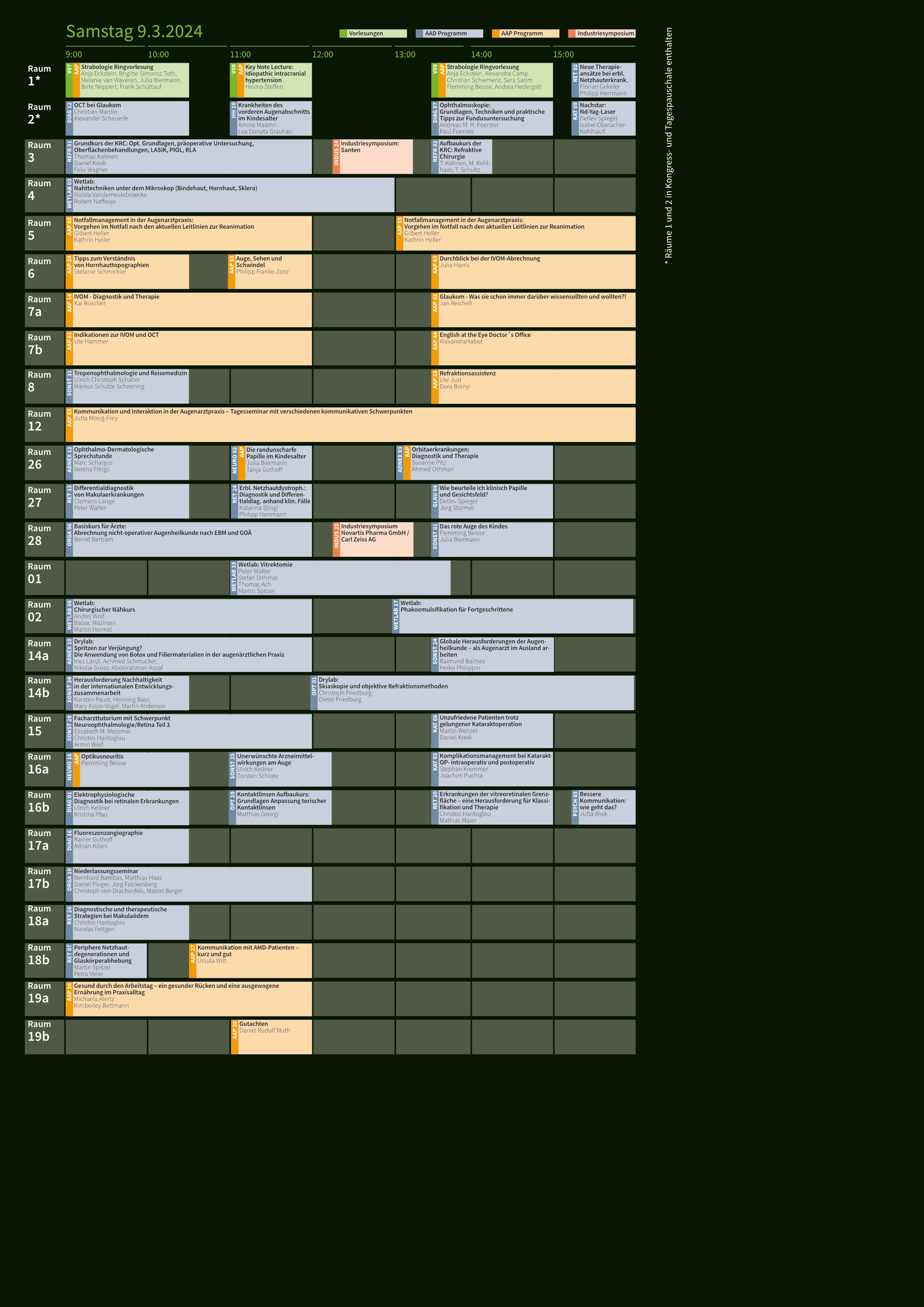 Programmübersicht 2024 Veröffentlicht am 19. November 2020 von H. Benjamin Tagesübersichten Mittwoch, 6.3.2024 Donnerstag, 7.3.2024 Freitag, 8.3.2024 Samstag, 9.3.2024 Für den Ausdruck der einzelnen Tagesübersichten klicken Sie einfach auf die unteren Darstellungen, um zu den PDFs zu gelangen. Diese sind für den gestochenscharfen Ausdruck optimiert.